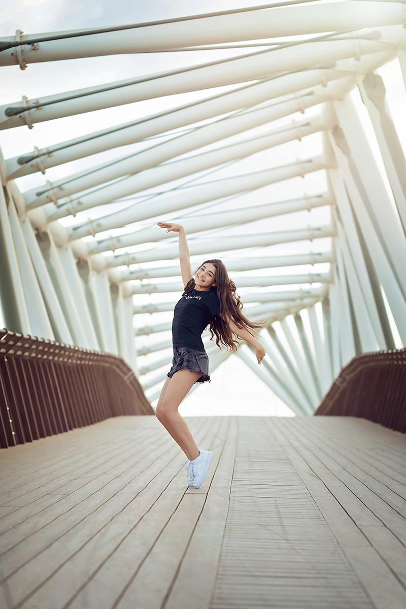 אם את מתכננת לבצע קפיצות ותנועות ריקוד בזמן הצילום על הגשר, קחי בחשבון שכל שפגאט, קפיצה, פיסוק רגליים – התחתונים שלך עלולים להציץ ולכן ההמלצה שלי היא או לבחור מכנסיים ארוכים (גם כשחם) או מכנסיים קצרים אבל צמודים ממש ולא ממש ממש קצרים.