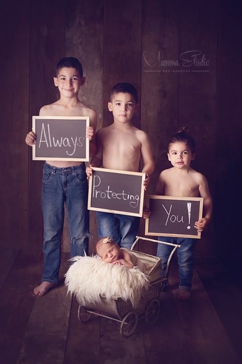 אם התשובה לכך היא כן, איך הם בשיתוף פעולה עם זרים? אם הם כמו הילדים שלי, סופות טורנדו בשילוב רוחות חזקות – אין אדם ביקום הזה שיכל לגרום להם לשתף פעולה בגילאים האלה. הם נולדו עם קוצים בישבן ולא יכלו לשבת רגע אחד בנחת. אבל השילוב של שלושתם ביחד, באותו חלל – הפך את הכל לאפוקליפסה אחת גדולה. סוג כזה של אופי – לא הייתי ממליצה לשתף בצילומים כי כל הלך הסשן זה יתיש, יעצבן ויאכזב אותך. תזכרי שבצילומי ניובורן התינוק אמור לישון שינה עמוקה, כל מה שנצטרך כל הזמן זה להרגיע את הילדים, לבקש מהם לא לגעת בשום דבר וכל הזמן להשקיט אותם ולבקש מהם לא לצעוק – כמה זמן הם יוכלו להחזיק ככה בחדר סגור?